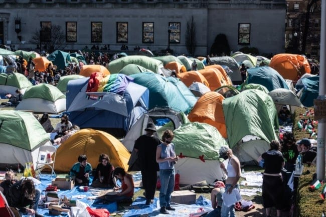 A second iteration of Columbia University’s encampment, pictured here on Apr. 23, 2024 arose after the NYPD shut down the first one. Stephanie Keith / Getty Images